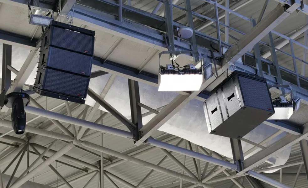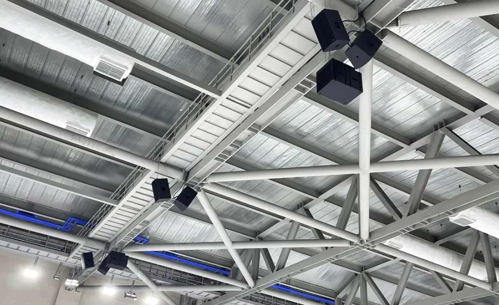 根據冰球訓練館的建聲特點,既要保證準確的覆蓋角度,同時利用音箱的分布將消極反射聲的影響降至最小。