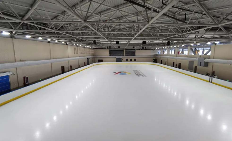 場館頂棚主要結構是鋼結構、地面為冰面,滑冰場周圍有玻璃防護墻圍繞,對音響聲音有一定遮擋反射。