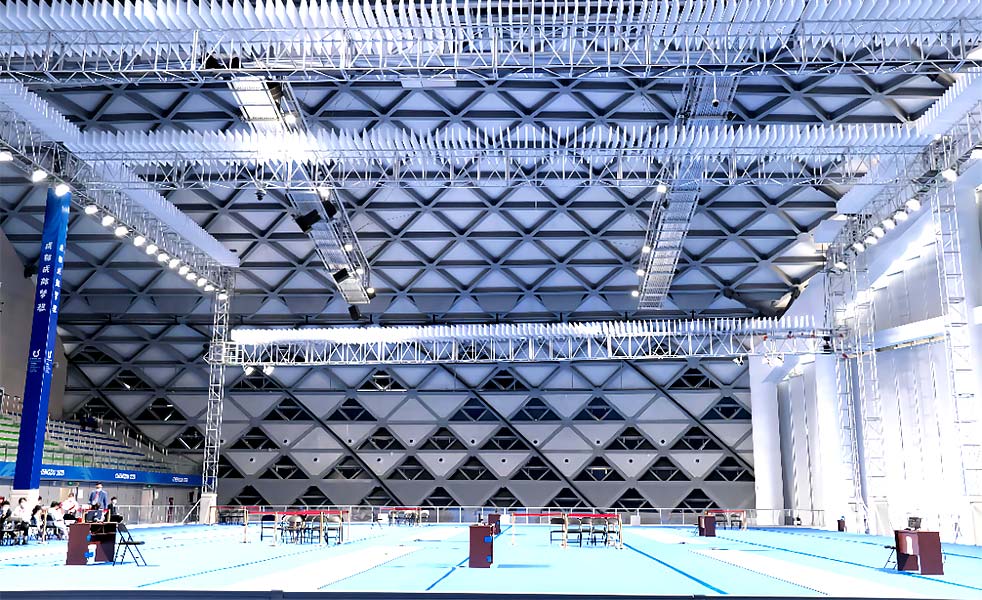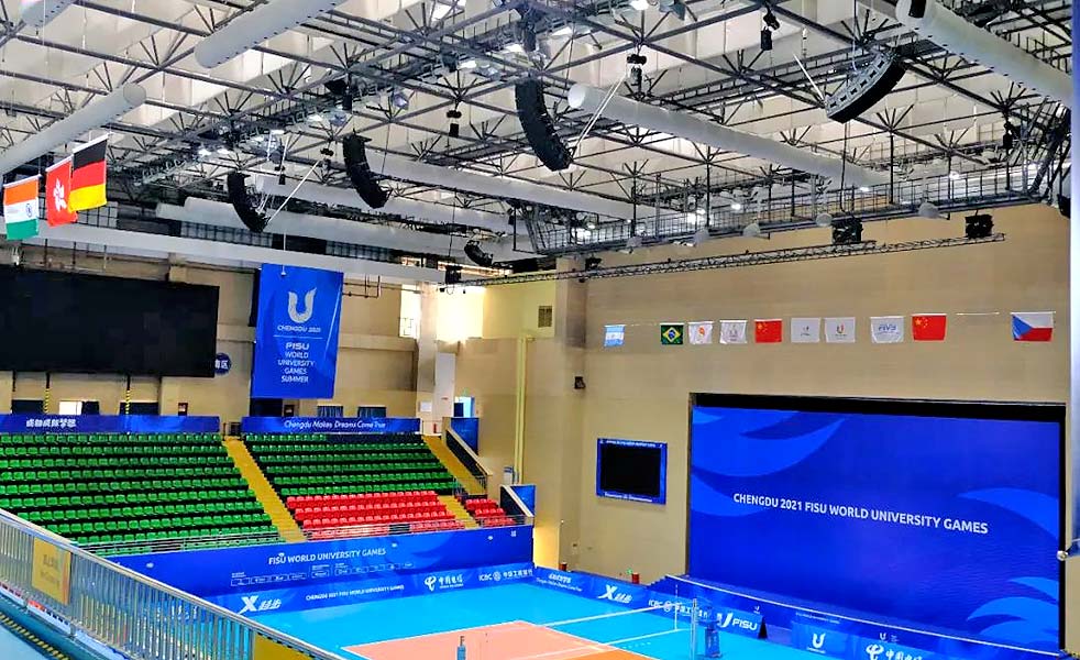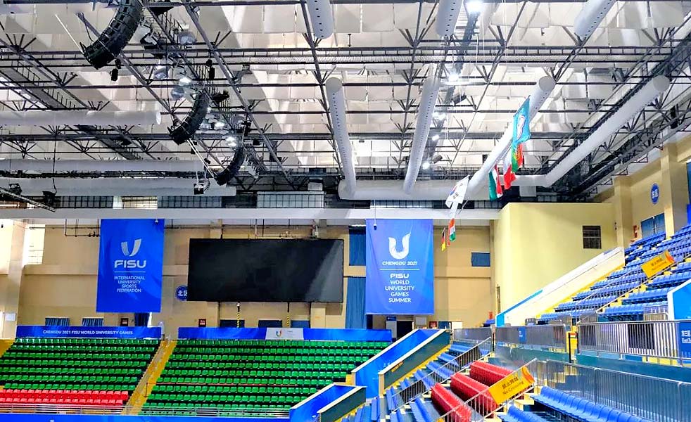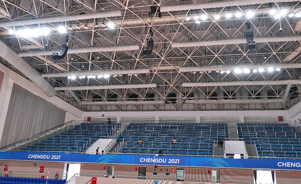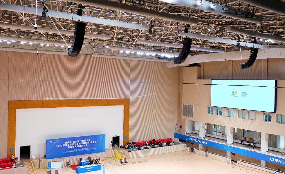 西華大學體育館為成都大運會排球項目比賽、熱身場館。技術工程團隊使用了30只LAX TOP線性陣列系列揚聲器,為觀眾區域提供清晰的擴聲傳達。比賽區域使用10只3D束波揚聲器LAX PS12系列。在這些揚聲器的協助下,保證了聲音的清晰度、傳輸的穩定性以及音效的直達聲效果,為觀眾們提供更加有氛圍感的觀看體驗,讓我們的比賽更加引人入勝。