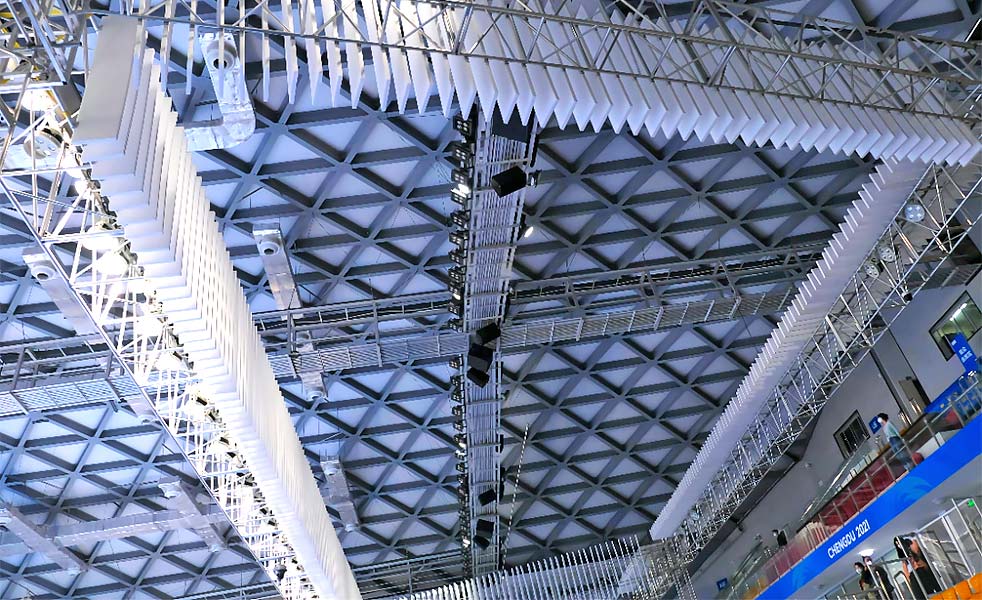在體育館的東西南北四個區域,我們配置了23只LAX雙12寸3D束波全頻揚聲器,這些揚聲器均以高難度的方式懸吊在體育館的馬道之下。高性能揚聲器的均勻布局確保了整個觀眾席區域聲音實現充分的聲音傳播以及足夠的響度,從而使觀眾在觀看緊張刺激的賽事或活動時,能夠體驗到耳目一新、強烈震撼的感受,充分享受到最佳的音響效果。