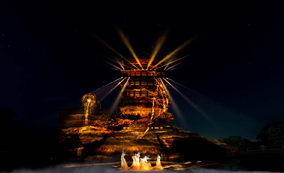 作為蘭州黃河樓景區(qū)最具代表性的演出產(chǎn)品,《大有蘭州》光影秀承載著黃河文化的內(nèi)涵和精神力量,立足蘭州歷史文化,圍繞“源之大河”“金之大城”“民之大韻”“合之大州”四個篇章,以黃河樓為承載,以 3D MAPPING 投影及燈光秀為核心,融合夜游互動、微戲劇演藝、樓體光影秀,形成文化展示+ 視覺欣賞 + 體驗參與功能三位一體的光影夜游體驗,致力于打造中國西部最具標(biāo)志性的城市休閑娛樂夜游項目。