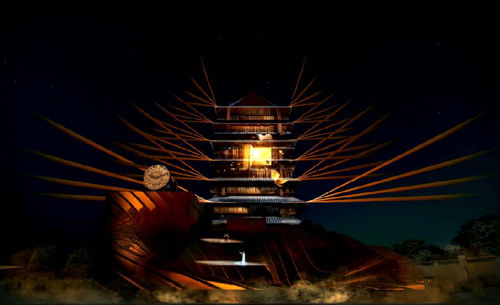 《大有蘭州》整個光影秀包含 10 分鐘純燈光秀,40 分鐘光影演藝,還有一個散布在樓體周邊廣場的互動光影夜游體驗。《大有蘭州》光影秀利用 30 多臺大功率激光投影機及最新的投影播控技術(shù),用影像覆蓋整個黃河樓東面塔樓及東廣場臺階平臺部分,結(jié)合激光、燈光、霧機等舞臺效果,通過演員的互動表演及舞蹈演藝,營造震撼的演藝光影秀。整體塔樓安裝了 250 多臺明道最新的戶外防水電腦燈和 10 臺激光燈,立體多緯度地將黃河樓點亮,通過創(chuàng)意光影秀為黃河樓增添活力。