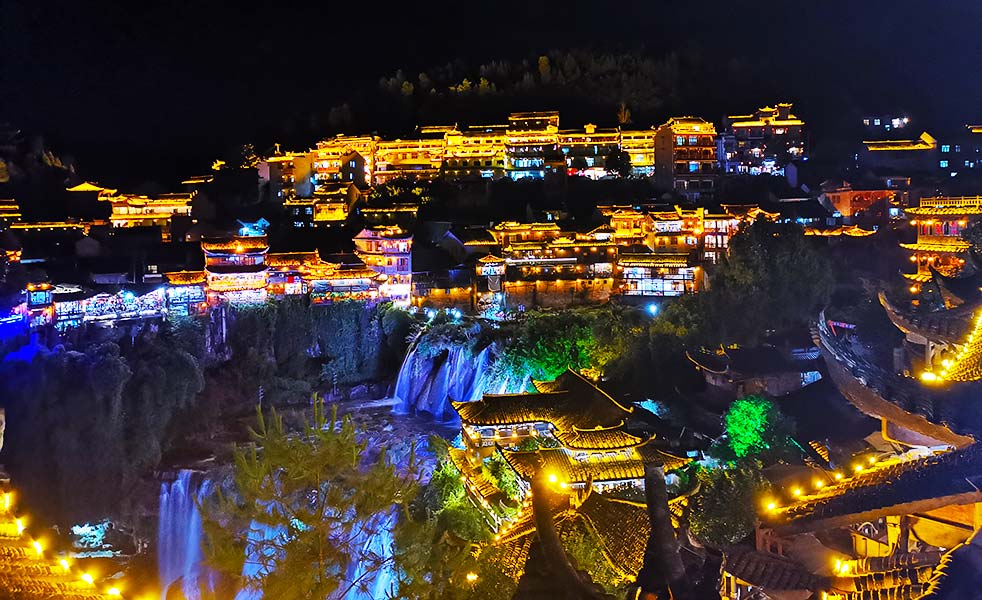 近年來,芙蓉鎮(zhèn)對旅游產(chǎn)品進(jìn)行創(chuàng)意升級,打造自身文旅特色的夜芙蓉,以科技燈光夜景和民俗文創(chuàng)夜演藝等為主打文創(chuàng)旅游產(chǎn)品,吸引游客走進(jìn)來、留下來,延長景區(qū)運(yùn)營寬度和廣度,進(jìn)一步點亮旅游夜經(jīng)濟(jì),通過不斷發(fā)展,如今的芙蓉鎮(zhèn)景區(qū)夜間文化和旅游業(yè)態(tài)呈現(xiàn)出時空縱橫融合、文化特色鮮明、動靜感受皆宜等顯著特點。