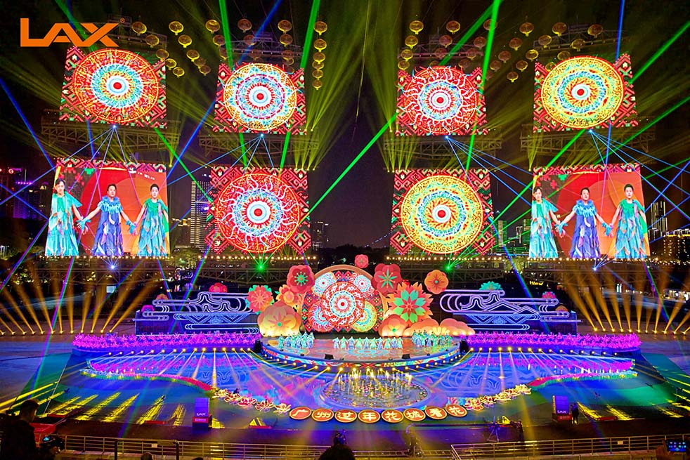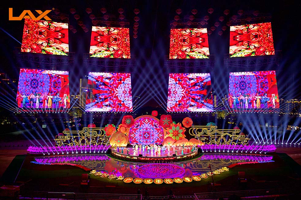 廣州創意迎春花市—海心沙燈光音樂秀,作為“廣州過年·花城看花”迎春花市活動的“重頭戲”。以海心沙水舞臺為主體,LAX產品融合音樂發聲聯動8塊LED帆屏,通過地面成像、燈光、激光、威亞裝置設備等現代高科技技術,為市民游客呈現炫彩奪目的春節城市節慶盛典,向世界詮釋獨有的城市品牌形象和文化內涵。