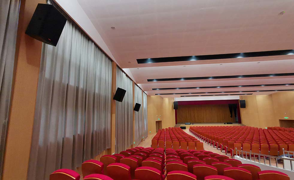 報告廳裝置AT210、ATH18B(8+2)作為主擴聲;S218B超低2只、QS15補聲6只、QS12返聽4只。