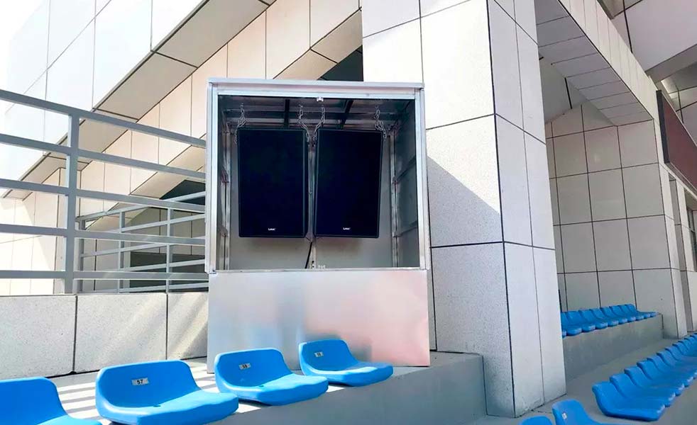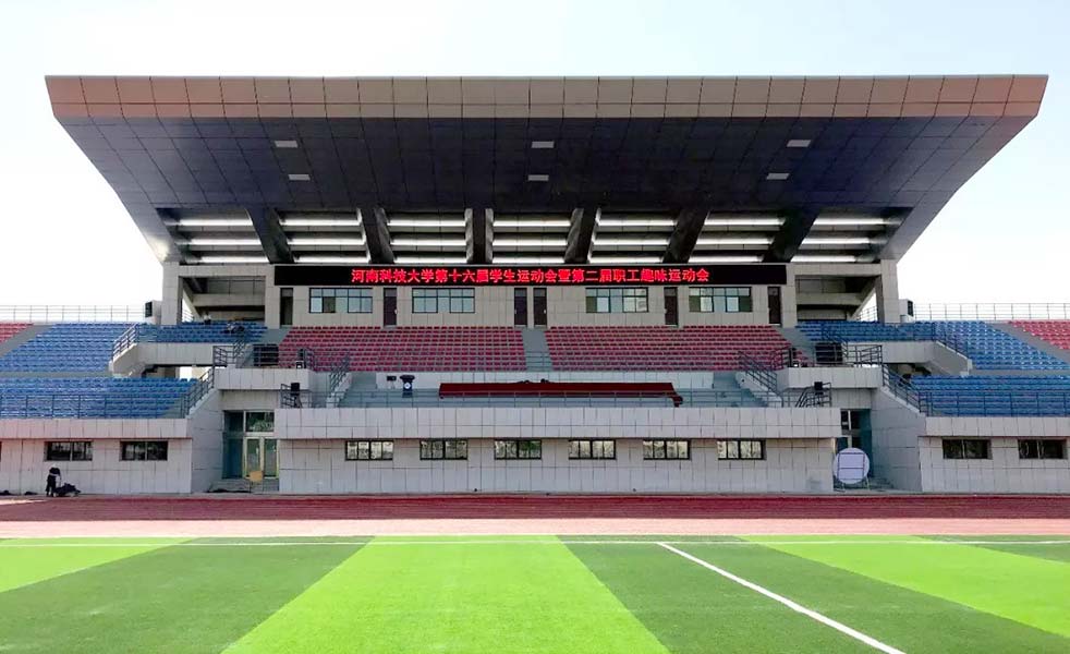 開元校區(qū)主體育場位于農(nóng)醫(yī)組團(tuán)東南側(cè),鄰近學(xué)校南門,占地面積近54000平方米,包括看臺(tái)及場地兩部分。其中看臺(tái)部分占地面積2745平方米,為框架三層,建筑面積3990平方米,內(nèi)設(shè)體育訓(xùn)練用房、器材室、貴賓室、辦公及教學(xué)用房。看臺(tái)設(shè)座椅3440個(gè);場地部分包括400米標(biāo)準(zhǔn)跑道,標(biāo)準(zhǔn)網(wǎng)球場3個(gè),籃球場5個(gè),排球場2個(gè)。 LAX為該體育館音頻設(shè)備提供、安裝、調(diào)試及技術(shù)支持服務(wù)。