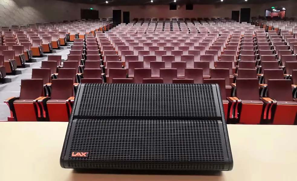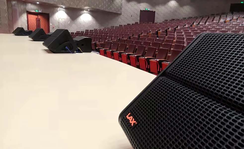 景德鎮市群眾文化活動中心劇場內全線使用LAX產品,主擴使用LAX AT110全頻線陣列揚聲器搭配ATL18B超低頻揚聲器使用,分別位于舞臺左右兩側吊掛,還有使用到TC815全頻揚聲器、S218B超低頻揚聲器,舞臺返送方面使用到AT12M作為返送音箱,U8 為臺唇音箱。