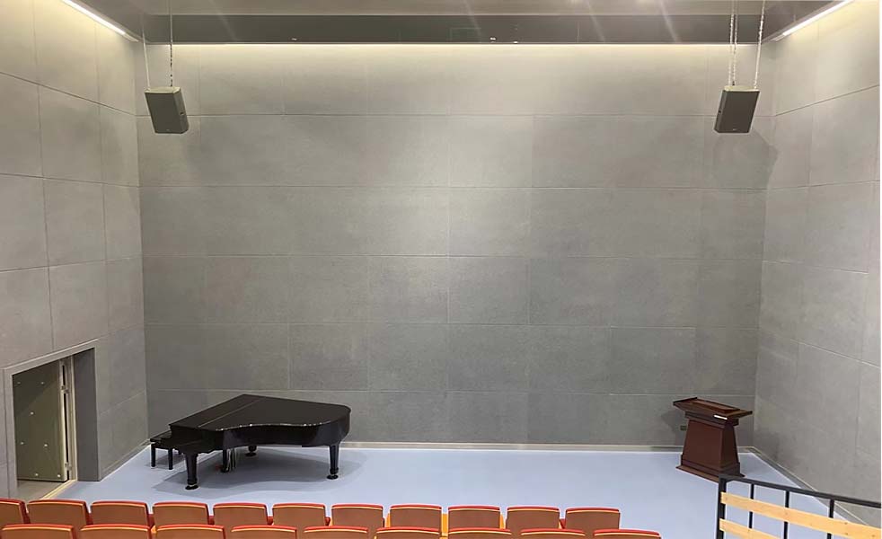 報告廳中安裝FP12A+兩分頻單驅動全頻音箱;而會議室安裝的是LAX最新研發的緊湊型束波擴聲音柱系統PTL404,另還有音視頻系統。