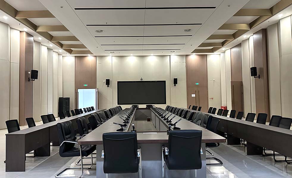 行政會議室音視頻系統包括:擴聲系統、數字會議系統、無紙化會議系統、遠程視頻會議系統、大屏顯示系統、智能電子桌牌系統、中控系統等。