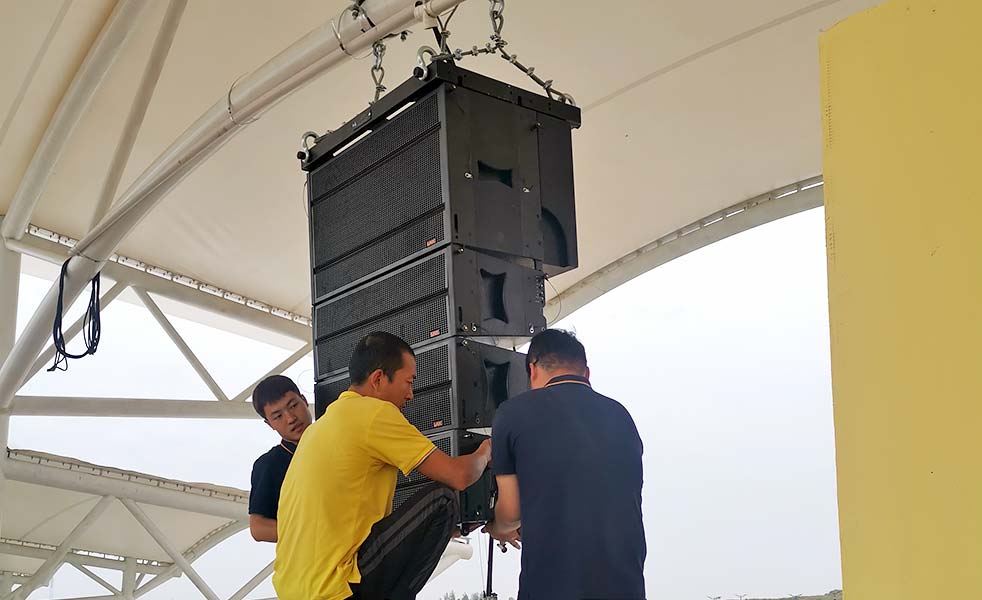 室外運動場主擴選擇4組LAX AT210+ATH18B線陣組,吊掛安裝在主席臺上方,選用單15寸二分頻單驅(qū)動全頻揚聲器TH615作為主席臺及近場補聲。音箱經(jīng)過精確擴聲角度調(diào)整,能夠確保操場主席臺、觀眾區(qū)及運動場區(qū)域覆蓋均勻、聲音準確、音質(zhì)清晰。