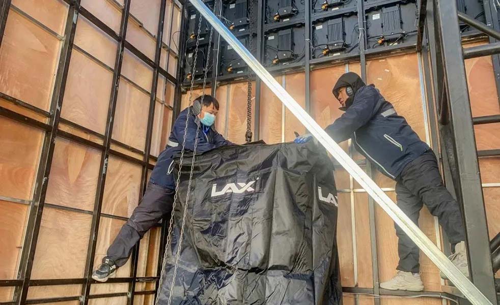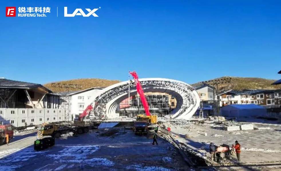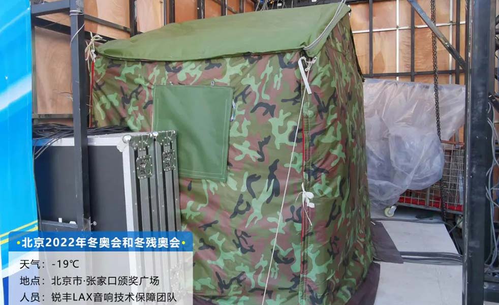 關于張家口頒獎廣場舞臺,銳豐科技LAX團隊在去年中與北京相關單位合作,經過了前期溝通,場地勘察,產品測試等多方面的準備。如張家口舞臺在2021年11月進行舞臺搭建和相關設備安裝,在12月下旬完成了交臺驗收。三大頒獎舞臺整個音響團隊多達30人,我司的技術工程師主要負責擴聲系統的設備保障。張家口舞臺位于戶外,所以工作環境特別困難,氣溫特別低,低溫對于人員工作和設備使用都分外艱巨。張家口舞臺使用的是LAX戶外演出的線陣列擴聲系統,在多次項目都有使用過:如國慶閱兵大典、廣州過年花城看花、新疆國際會議中心戶外燈光秀等多次大型活動戶外使用驗證,加上系統工程師日夜按時按規的系統使用,實時監控,才保證了整個活動期間能夠安全穩定的進行。