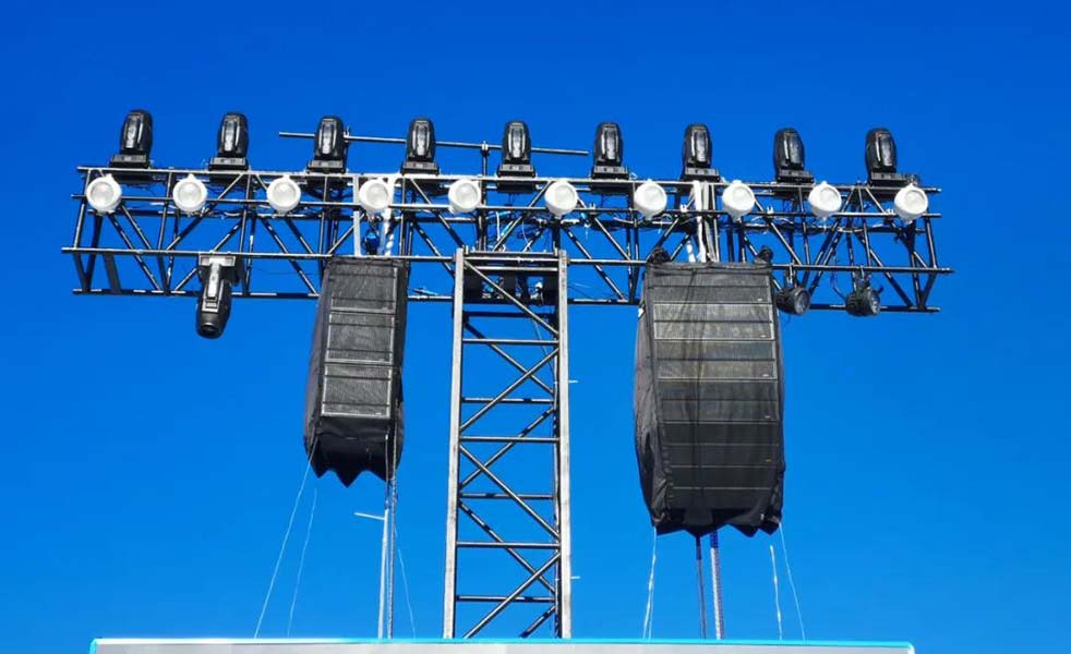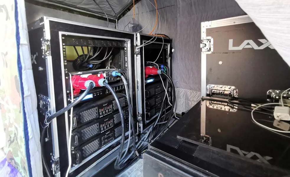 張家口舞臺使用了兩組雙12寸的線陣列主擴揚聲器AT3212V2,保證在戶外兩千平廣場有足夠的聲壓。因為舞美配重設備要求,我們選型了單18寸可吊掛的大功率超低頻揚聲器ATL18B,保證有足夠的低頻功率輸出,盡量縮小體積以及重量。后級設備準備了設備間,在保障人員起早貪黑的辛勞工作下,保證功放開機溫度在10度以上,確保了功放電子設備穩定運行。