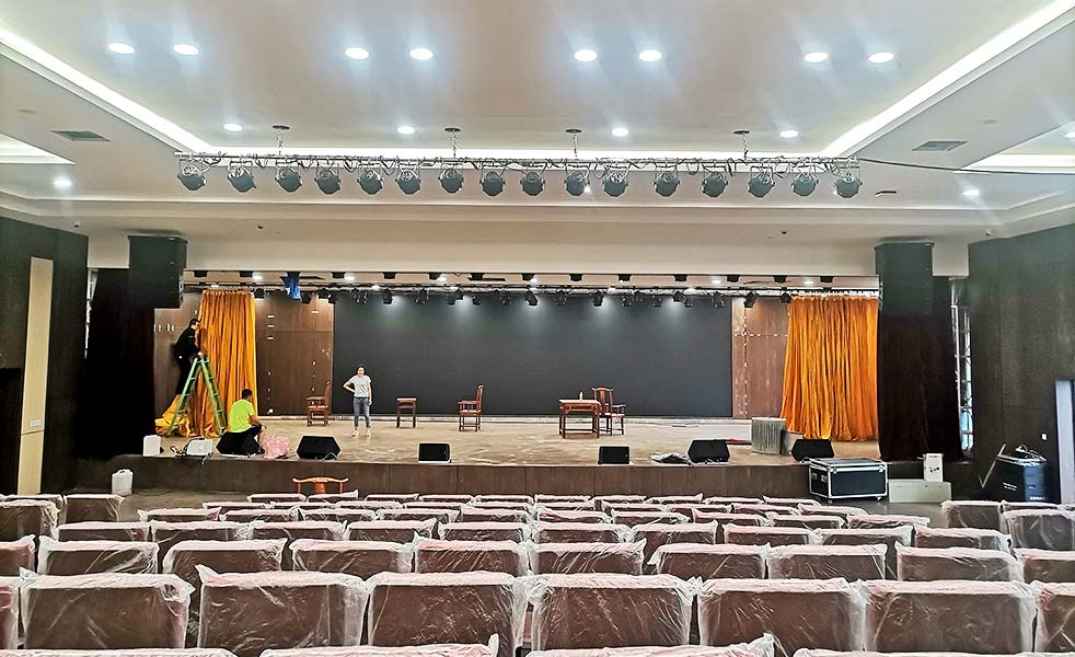 2、報告廳擴(kuò)聲系統(tǒng)+話筒系統(tǒng)+中控系統(tǒng)
