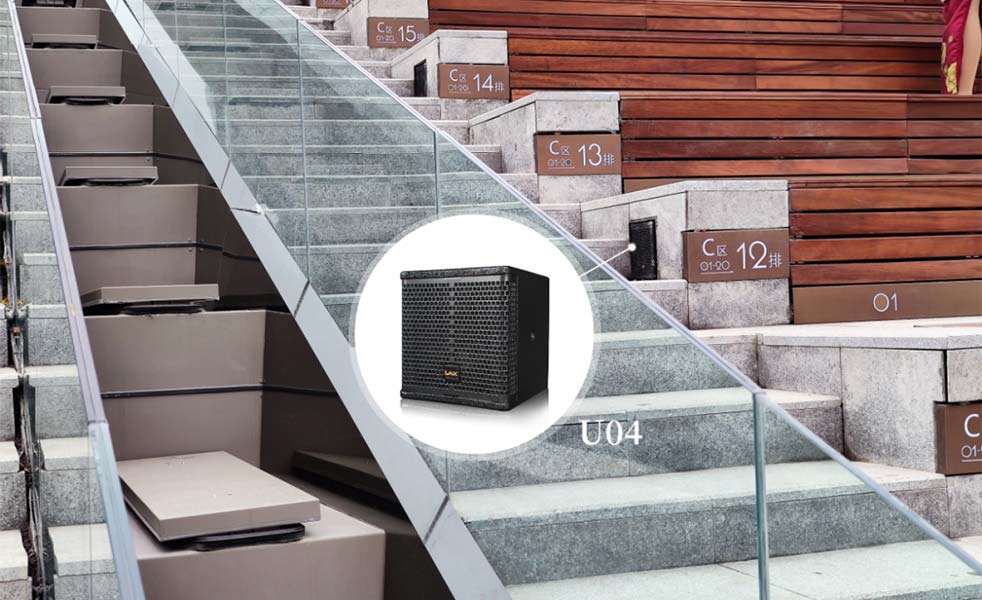 OPD12主擴+OPD18B超低的搭配使聲音/聲效有更加準確的空間感和定位感。通過縱向排列U04音箱,使其聲音輻射到旁邊玻璃再反射回觀眾席,巧妙地復制了“soundbar”效果,為觀眾增加環境聲效的沉浸感。實現“聲音本無物”,“有聲勝無聲”的純粹、自然、低調,也更能契合導演的藝術價值,達到不可復制的演出效果。
