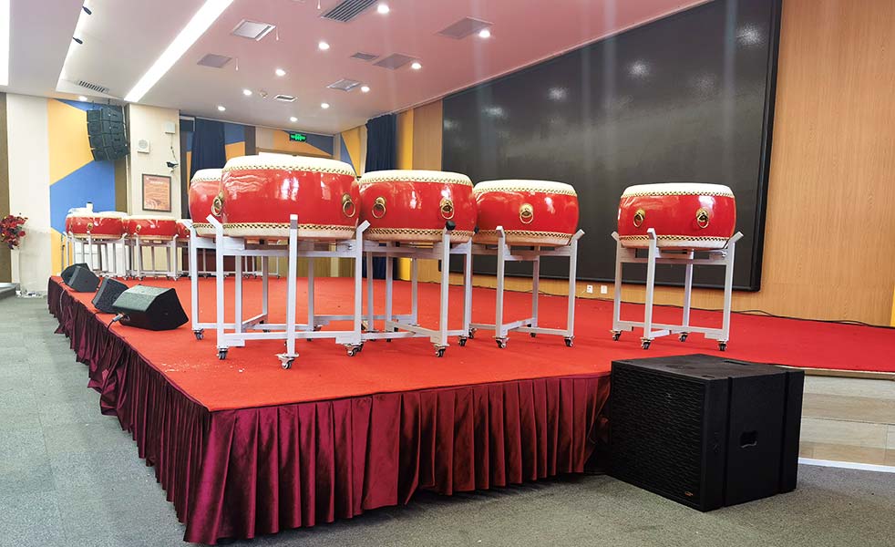 舞臺臺唇選用4只LAX XA108全頻揚聲器,隱藏安裝在舞臺前側(cè),給觀眾席前區(qū)補充聲源。