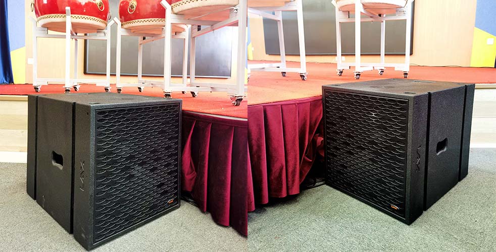 舞臺兩側(cè)各設(shè)置1只 LAX S118B超低音揚聲器,對擴聲系統(tǒng)低音部分進行補償。
