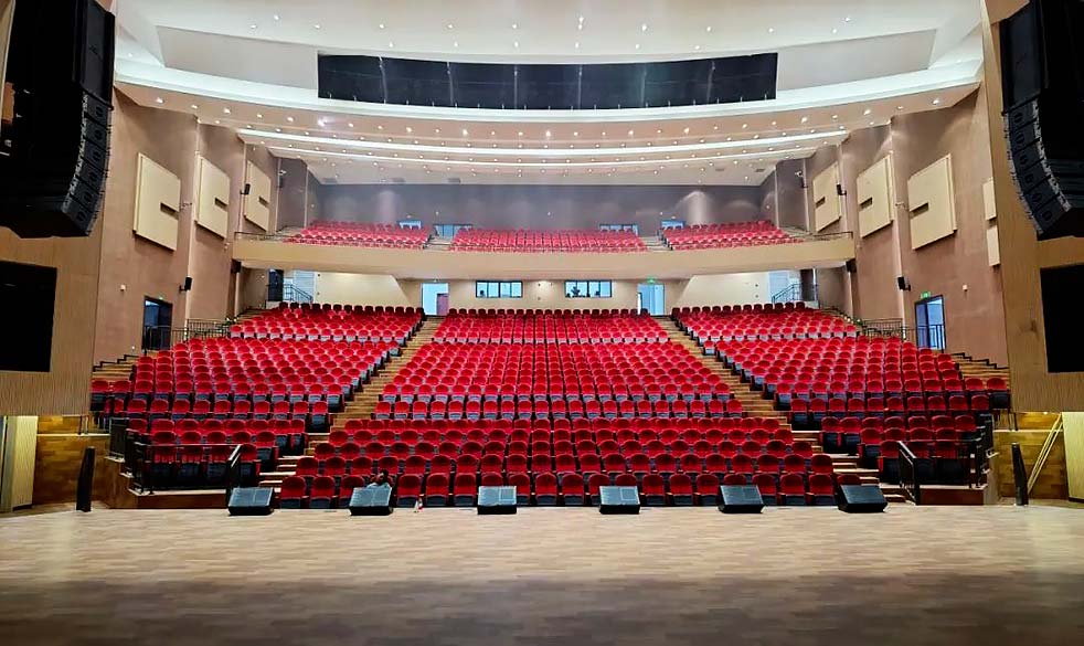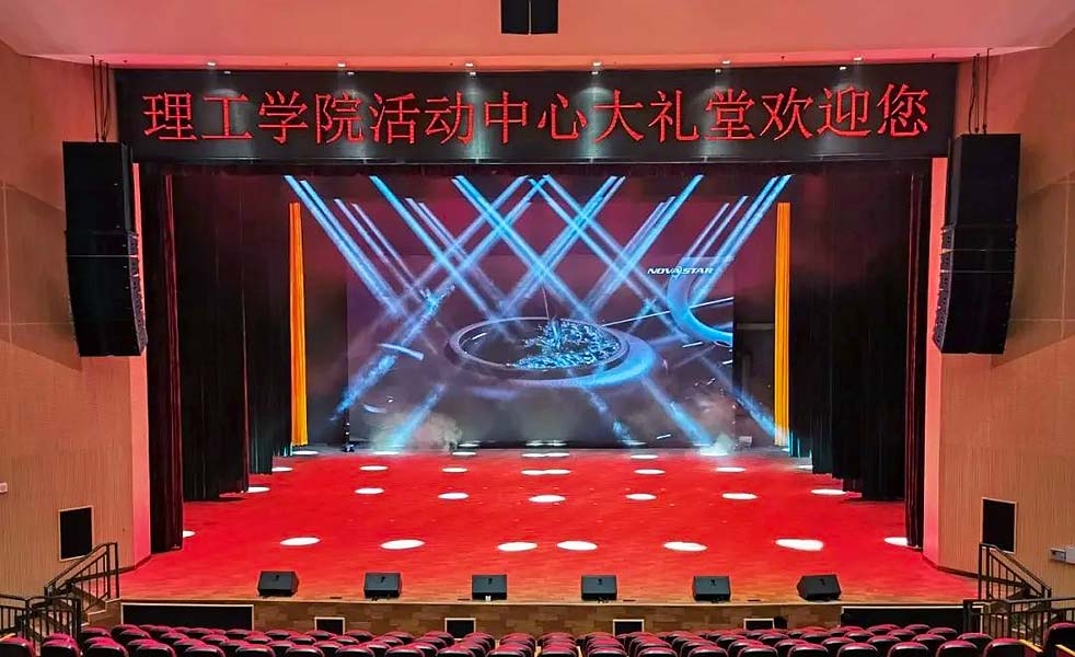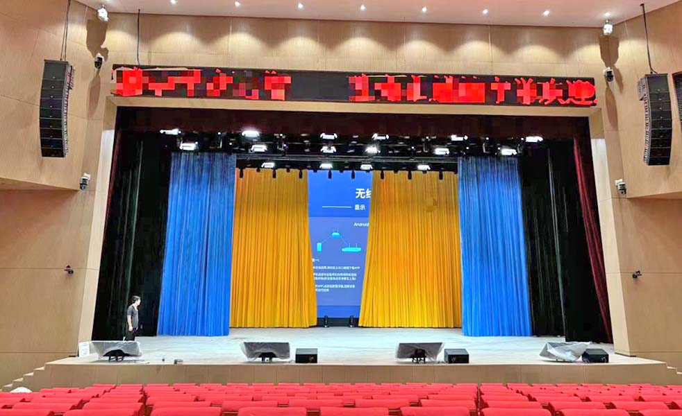 貴州理工學(xué)院貴安校區(qū)師生活動中心大禮堂采用12只LAX OP3122雙12寸線性陣列揚聲器作為整個大禮堂的主擴聲系統(tǒng),配套4只ST218BP雙18寸可吊掛陣列式超低頻揚聲器作為低頻擴展,使用2只TR115單15寸揚聲器隱藏于聲橋內(nèi)作為中置聲道揚聲器,地面擺放4只為增加大禮堂的低頻表現(xiàn)力及震撼感,使用4只S218B超低揚聲器落地式擺放做為低頻動態(tài)擴展使用。