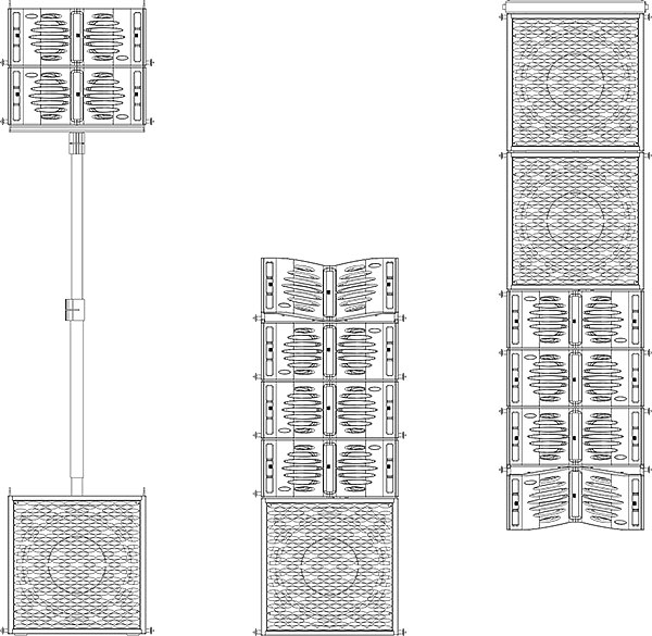 ATS小型線陣列音箱擁有靈活的組合形式:2+1支撐組合,4+1的疊裝組合,4+2 吊掛組合。