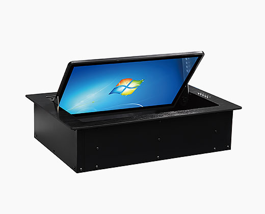 它集翻轉顯示器,升降鍵盤,電腦主機,無紙化UI界面于一體。不使用時鍵鼠隱藏,開啟翻轉器后,顯示器自動翻轉成一定角度,鍵盤也隨著升起,外形輕巧美觀大方。最新機械防夾手功能,安全可靠。升降面板上配有開關鍵,USB,升降按鍵,和耳機插口。面板大小、顏色及箱體材質、顏色可根據用戶需求定制。可以單機遙控也可通過中控實現多臺集合控制。