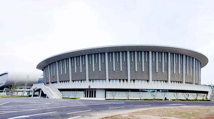 北京市冰上項目訓練基地位于延慶城中心,總建筑面積8萬多平方米,主要包括綜合訓練館、教學管理公寓樓及其他附屬設施。從空中俯瞰,圓角方形場館和半圓形場館連成一體,西側綜合館為半圓形,如同半個“冰球”,東側訓練館為八邊形,似一個方形的“冰壺”。