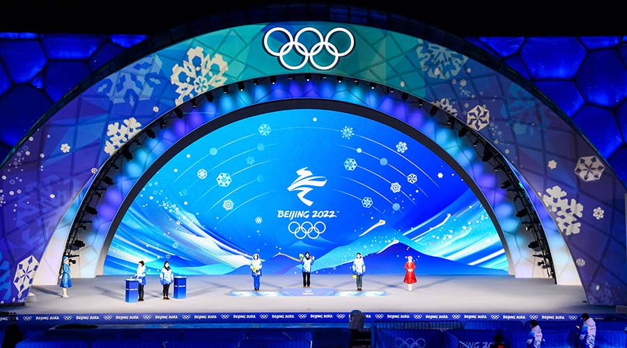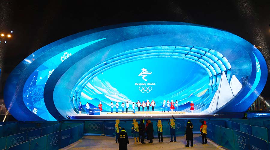 北京頒獎廣場舞臺名為“美美與共”,位于北京城區的國家體育場和國家游泳中心之間,飽含喜迎八方客、共度中國年的良好寓意。