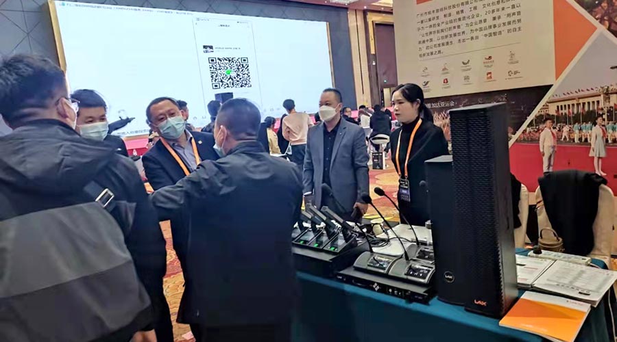 本次巡展銳豐科技主要展出LAX DTY全網絡環狀數字DSP有線會議系統、ETA高端數字有線全功能會議系統及建黨100周年特制U04揚聲器。